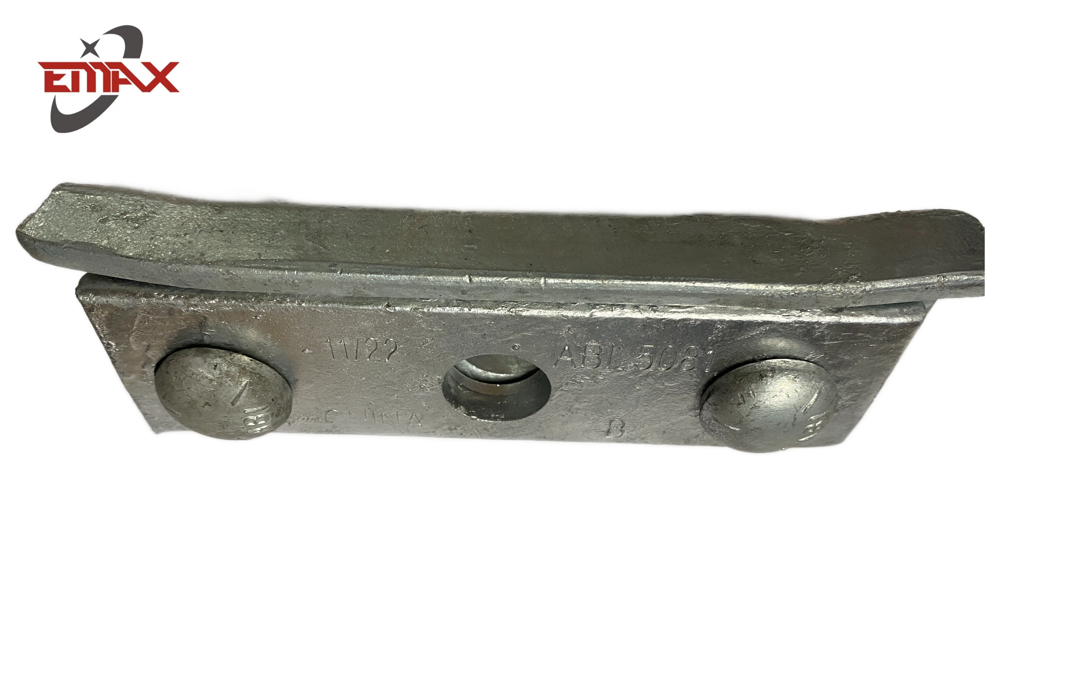 Die Klemme besteht aus zwei passenden Platten, zwei 5/8-Zoll-11-Schienenschrauben mit angebrachten Vierkantmuttern.