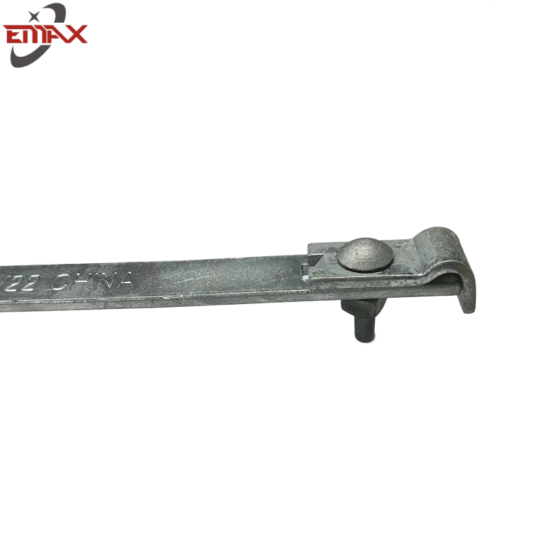 Bestehend aus einer Stange mit einer Litzenklemme an jedem Ende, die mit einer Schraube, einer Sicherungsscheibe und einer Vierkantmutter positioniert wird.